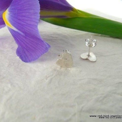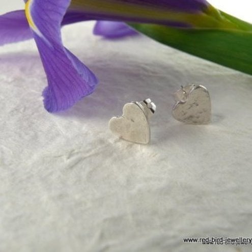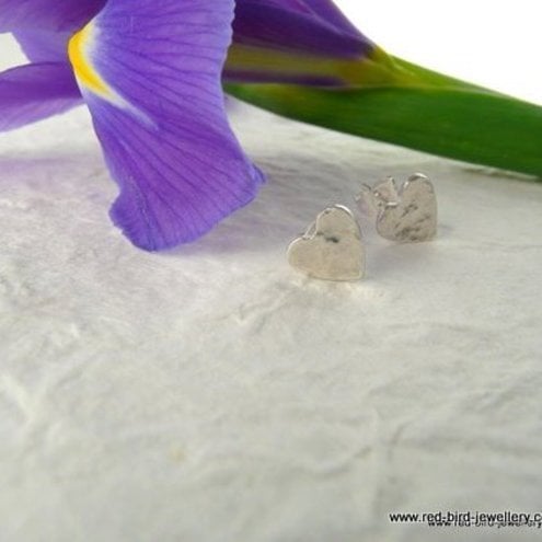 Little fine silver hearts, handmade and gently hammered to add texture and reflect the light. The ear post is sterling silver.