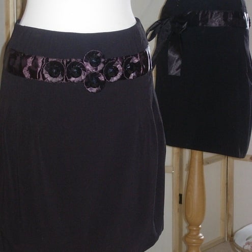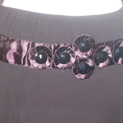 The subtle pleats fall from the waist/hip band which I have decorated with pleated rossette style decorations with central beads. There is a ribbon trim that ties at the back.