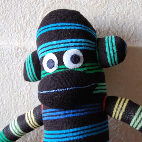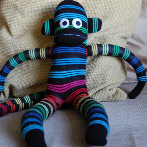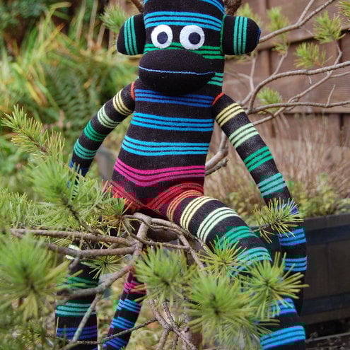 A fun soft toy made from a brand new pair of socks and filled with polyester fibrefill conforming to EN71