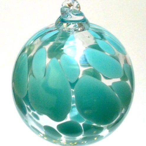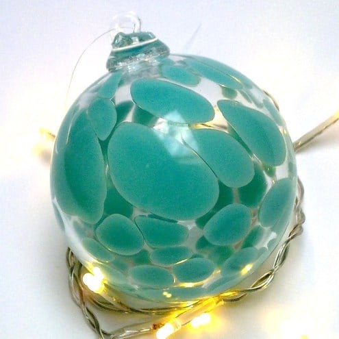 A Soft opaque Robins egg coloured glass bauble.