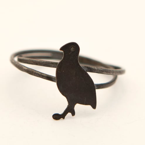 This beautiful handmade silver ring is oxidised so makes a lovely silhouette on your hand. It is inspired by the Red Legged Partridge. The bird is pierced and soldered to the ring. It is sterling silver. It comes in a grey/black jewellery box, with a handmade tag with information about the bird.
