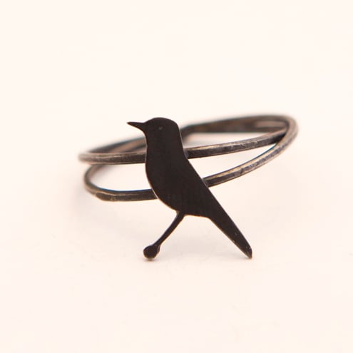 This beautiful handmade silver ring is oxidised so makes a lovely silhouette on your hand. It is inspired by the Bluethroat. The bird is pierced and soldered to the ring. It is hallmarked sterling silver. It comes in a grey/black jewellery box, with a handmade tag with information about the bird.