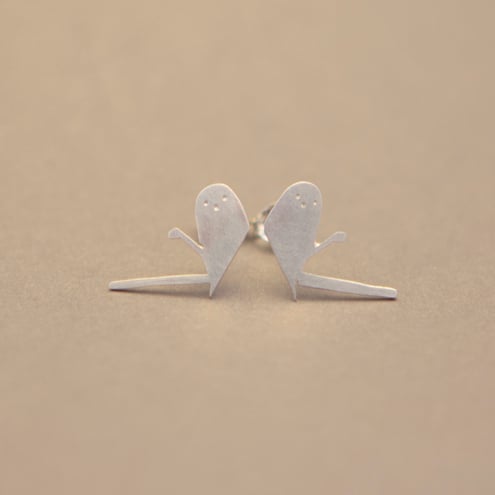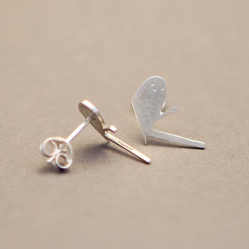 These beautiful handmade silver stud earrings are inspired by the Long Tailed Tit bird. The simple design makes a lovely silhouette.