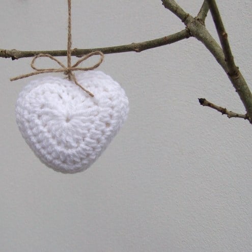 A white crochet heart that is perfect as a decoration for Christmas or for a winter wedding. It is stuffed with winter spices for an extra seasonal splash. The heart is ideal for hanging from a tree or as a door hanger to fill your room a Christmas fragrance.
