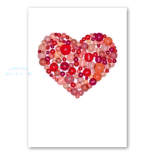 Beautiful A4 'Button Heart' print in shades of red and pink. Ideal for the button lover in your life! Lots of lovely buttons overlapping to create a luscious heart!