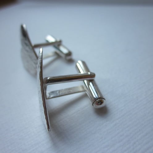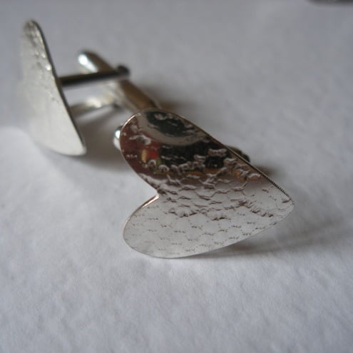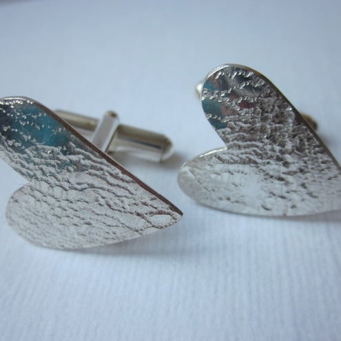 Sterling silver Heart Cufflinks textured with a lace pattern.