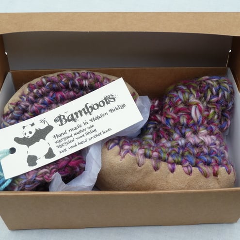 These funky little shoes will keep your baby's feet snug and warm and add a dash of colour to any outfit! Warm merino wool fabric with stretch for comfort and growing room. A perfect gift for a newborn.