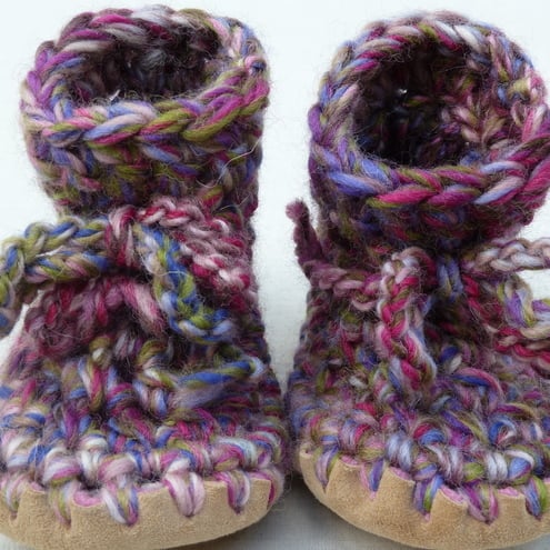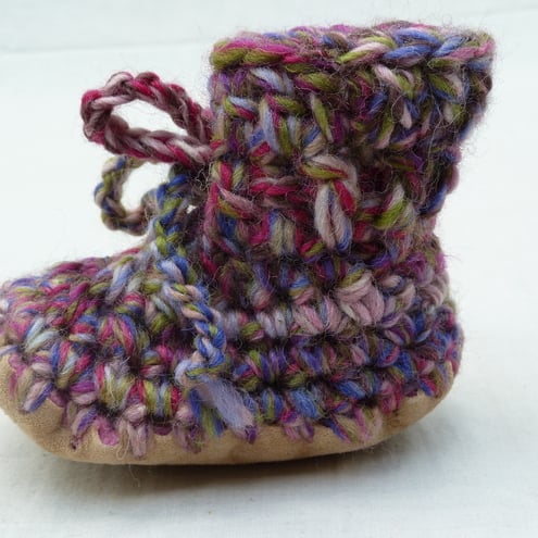 100% soft chunky wool hand crochet baby bootees