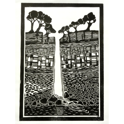 An original lino cut print (open edition). Printed from a hand-cut lino "plate" with an oil-based but water washable ink on to Zerkall paper. Print size is approximately 32x22cm. These items are hand-printed and so vary slightly depending on ink density, character of the paper, pressure of the press and the way the wind blows (ok, maybe not the last bit).
