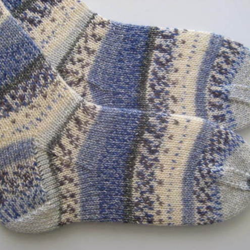 I hand knit my socks 'in the round' on 5 double pointed needles so there are no seams. The toe is grafted (kitchener stitched). As with all my socks, the two match as closely as possible. I use good quality 4 ply machine washable sock yarn which washes very well. Fabric softener can be used unless otherwise stated but the socks seem to get softer after each wash without it.