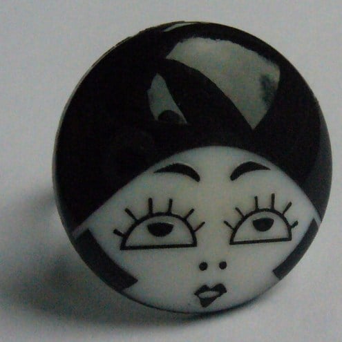 A Button featuring the stylised head of a 'flapper' lady has been used to create this unusual ring.
