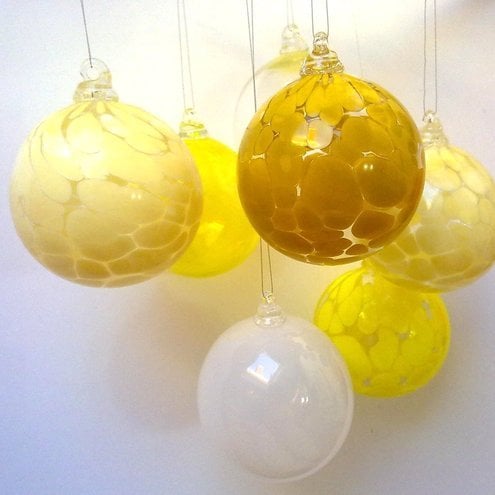 Bright and colourful glass ornaments handmade for you.
