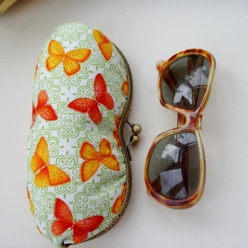 Charming little purse for glasses, sunglasses or mobile phone in pretty Moda fabric with conrasting lining. Measures approx 8"x 4"