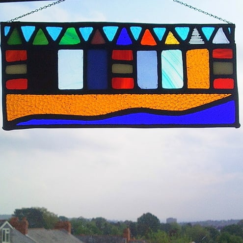 One of my most popular designs, inspired by the beach huts on the local beaches around Devon. Each piece is slightly different as I use recycled glass