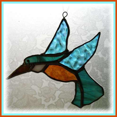 Photos 1 and 2 are of the kingfisher which is for sale here. Photo 3 is of the previous one I sold so you can see that though the same design, each is different. Photos 4 and 5 are of the hummingbird version which I can make for you if you prefer. If so please ask..