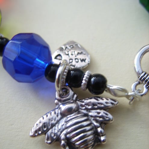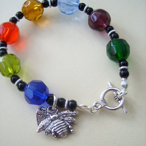 This cute busy bee charm bracelet with rainbow glass chunky beads would make a perfect gift...you will probably want to keep! 7 inches in length.