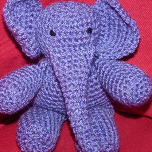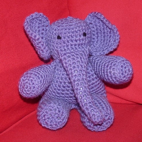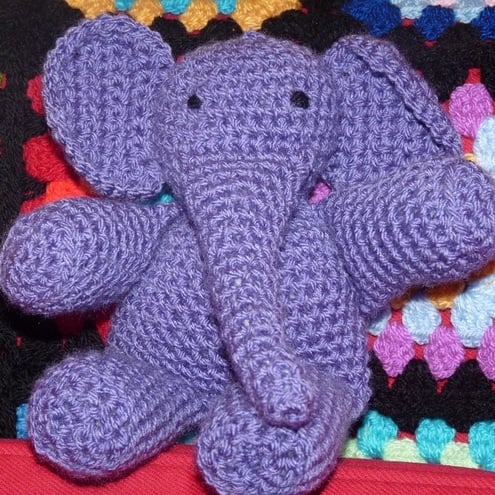This gorgeous little crocheted elephant is desperately looking for a home. She is easy to care for, needing plenty of cuddles and the occasional machine wash if she gets grubby.
