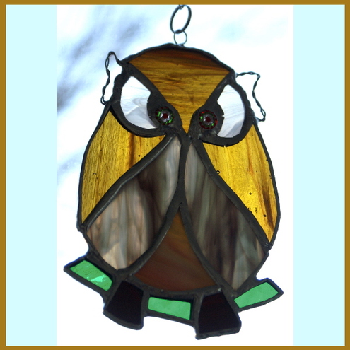 The suncatcher hangs from a little chain which is securely attached to the top of the owl.