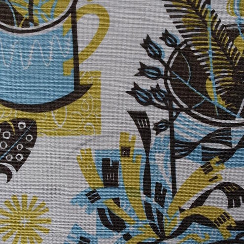 Handmade Drum Lampshade made using Nature Table fabric by Angie Lewin, a 3 colour design screen printed in the UK onto a heavyweight oyster linen union. Revill,Revill is very pleased to be working with St. Jude's to produce lampshades in their wonderful fabrics.