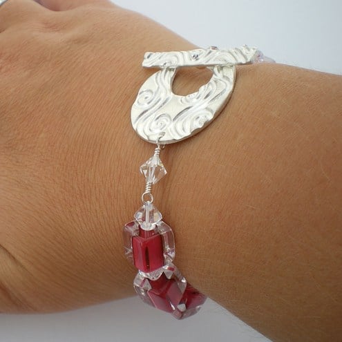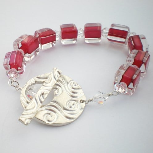 I've finished the bracelet with a hand crafted silver art clay toggle clasp. The clasp is decorated with a swirl pattern.