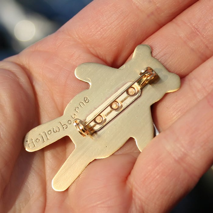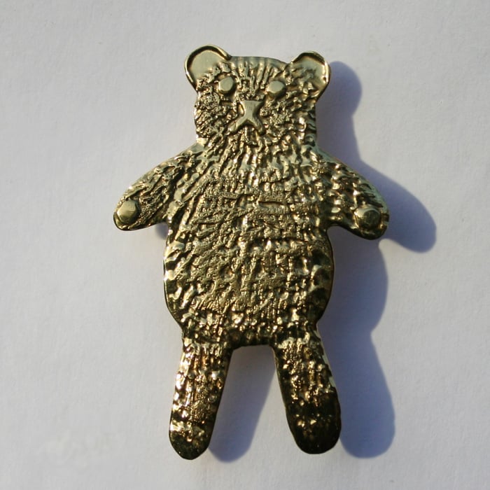Handmade cute teddy bear brooch made by me from sheet brass.
