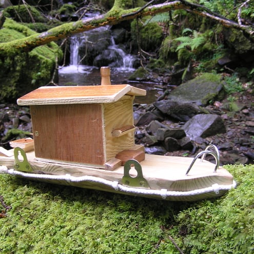 A unique and original handmade bird box with a nautical theme. This boat is made of recycled materials, obtained from on and around Exmoor. Includes brass fittings and screws for easy hanging. Access door for cleaning. They are strong and made to last. Could be left on the ground to home little furry things! Could even make a nice ornament . Nice display stand available free on request. Happy Nesting !