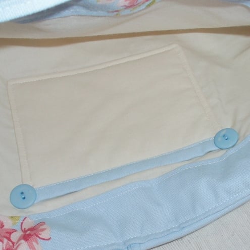 Made from blue Tilly fabric,with a cream lining and one internal pocket .