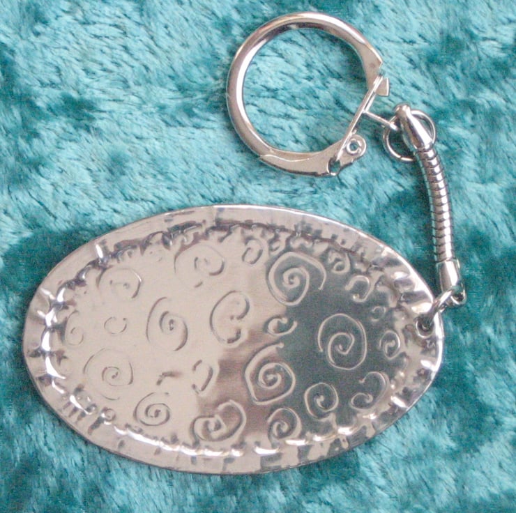 This keyring has been handmade in lead free pewter, and comes on a snake chain. The oval measures 58 x 37mm. Light in weight.