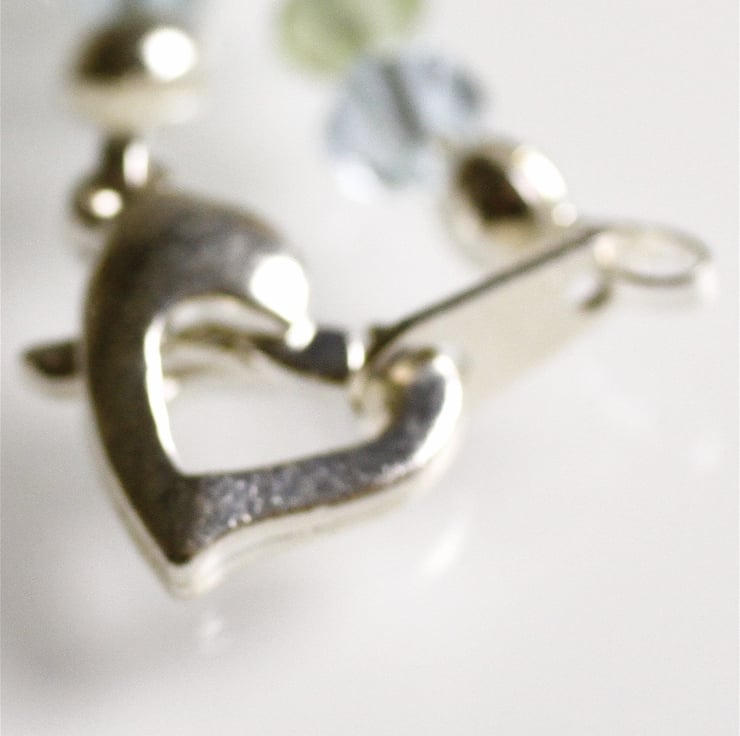 Detailing is completed with a silver plated heart shaped clasp.