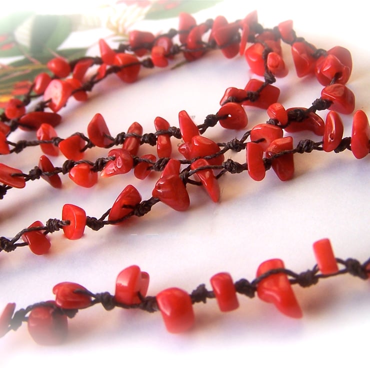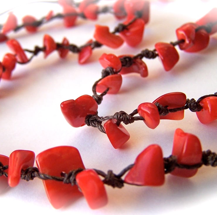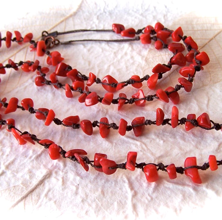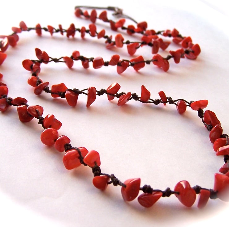 The sea bamboo stones in this pretty necklace are an intense rich shade of red.