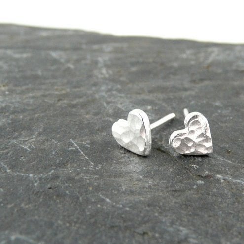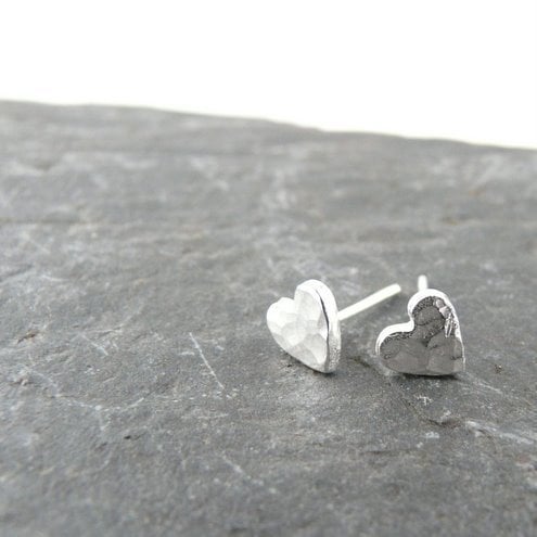 These are hand made fine silver hearts, with a sterling silver earpost - the post is around 1cm long which makes it secure but doesn't hurt your head!!