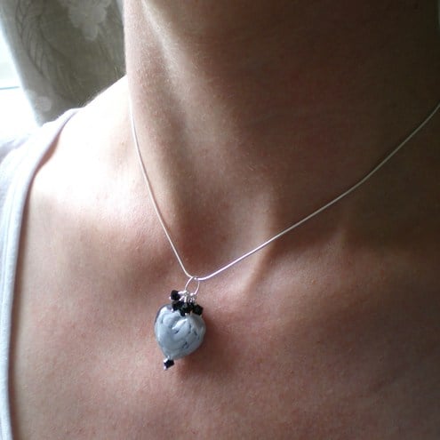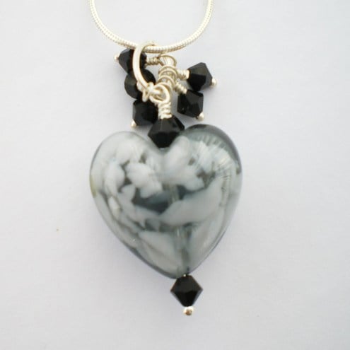 I've gone heart crazy! This gorgeous genuine Murano glass slate 'clouds' heart measures 21mm x 21mm x 10mm. I've teamed it with tiny swarovski jet crystals which sparkle in the light. A really pretty and striking pendant.