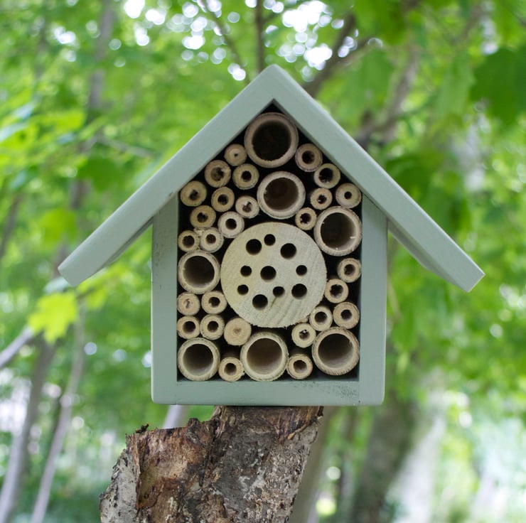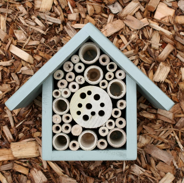 This insect habitat is ideal for hanging in a sheltered yard, orchard or on a house wall.
