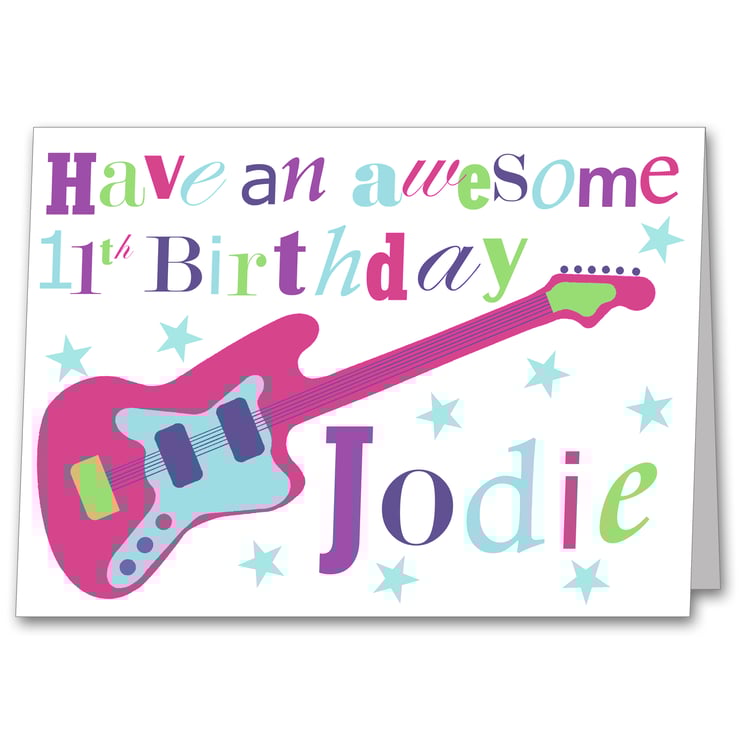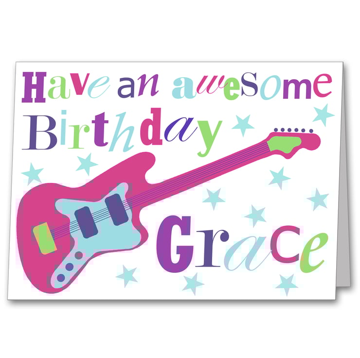 Make a music loving girl's birthday with this fabulous guitar birthday card. It features an electric guitar with a personalised birthday message and the recipient's name.