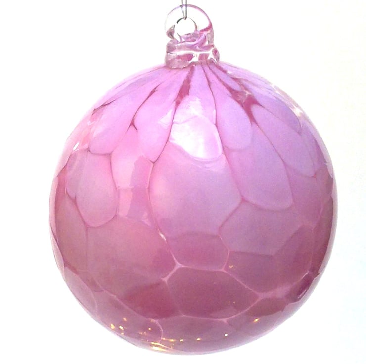 A lovely opaque rose pink colour glass bauble.