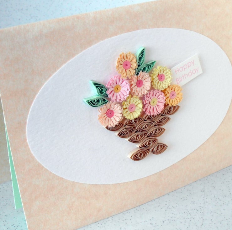 Quilled birthday card, handmade greeting