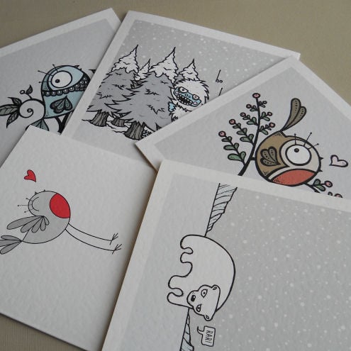 all are printed on matt textured white card, and will come with matching white envelopes, packaged in the usual way.