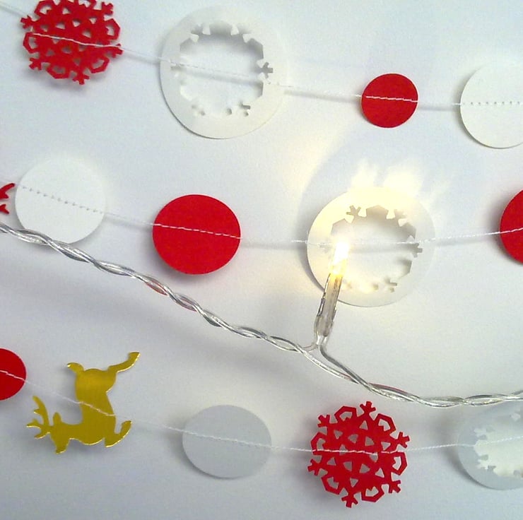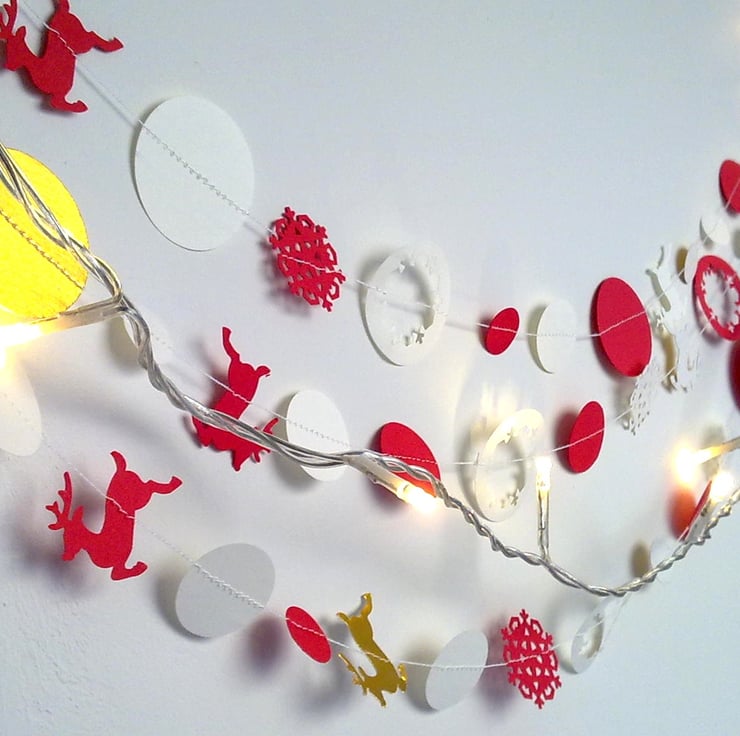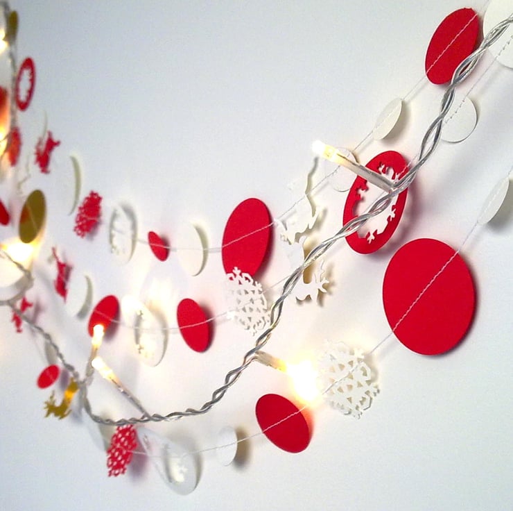 In the traditional Christmas Scandinavian red and white colours, with a flash of gold.