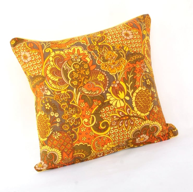 We love colours and vintage patterns, especially from the 50s, 60s and 70s, so we try to incorporate them as much as we can in our creations. We like to look through antique markets and auctions for little gems of the past, in this way also re-using and recycling materials. This cushion is made using an original vintage fabric that we bought at an auction recently and it will brighten up any room!