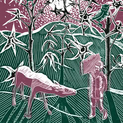 The result of eating too much cheese before bed-time. I was a little confused in the morning, and the only was I could make sense of the dream was to create a linocut!