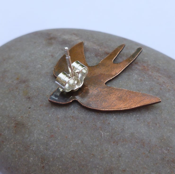 These earrings are hand pierced from sheet copper and the hammered finish means that they catch the light and glitter in a lovely way.
