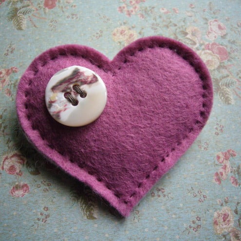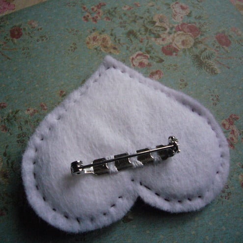 Pink Heart with a white felt backing and 25mm brooch pin secured on the back.
