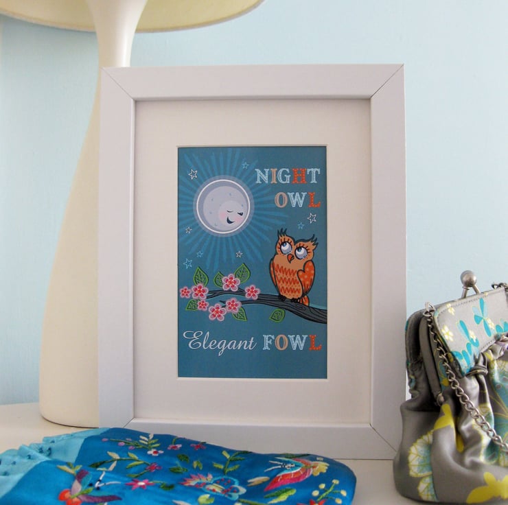 'Night Owl' 6x4" mounted and framed print - £7.00