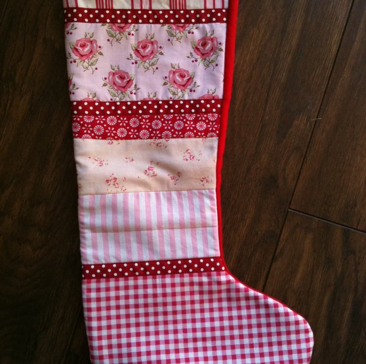 Handmade patchwork Stocking ready for small gifts on Christmas Day.