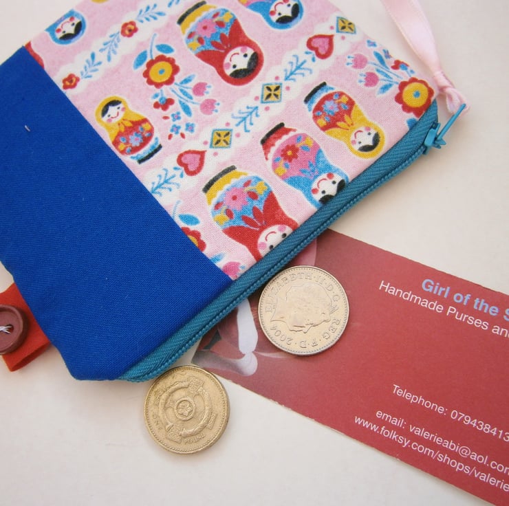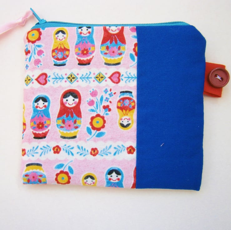 Pretty little Russian doll Japanese printed fabric coin purse, perfect for your coins, notes and cards.