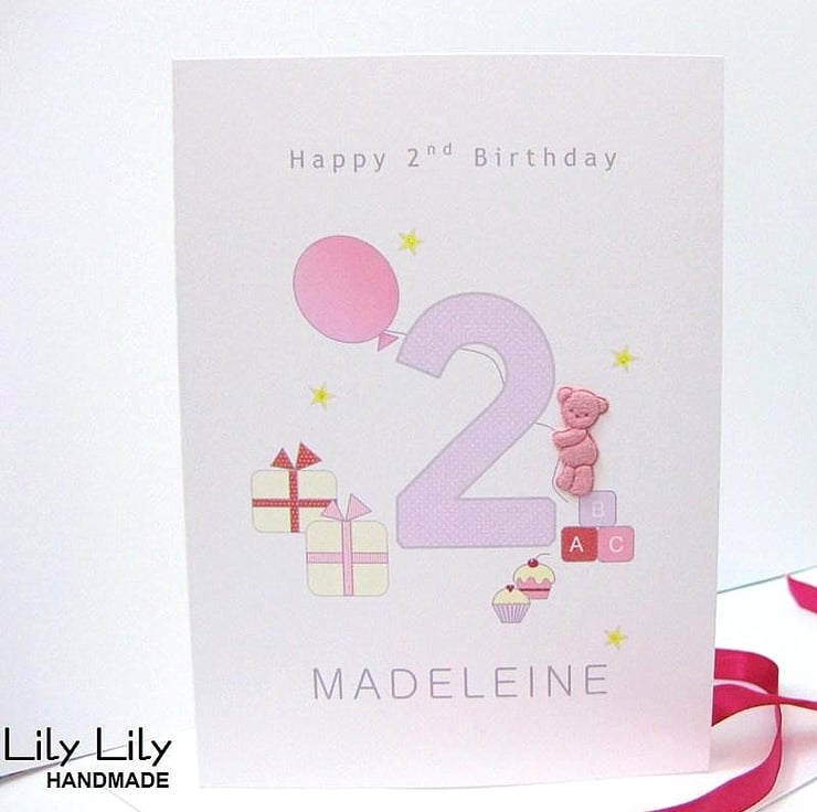 Personalised birthday card featuring a design by Lily Lily Handmade. The card can be customised with any name and age to make it extra special!