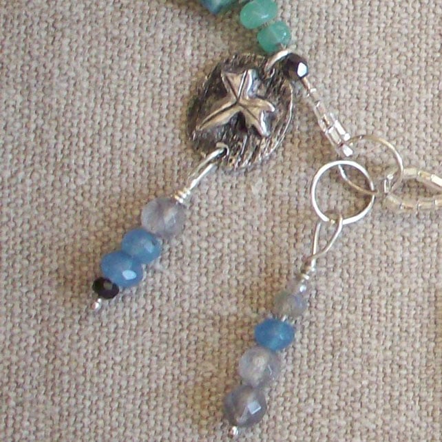 From my "Myth & Nature" Collection. This stunning piece shows an ancient tree trunk, framed by ivy leaves. It is made from lustrous 99% fine silver. Chunky dramatic beads of African chrysocolla and labradorite are trung between sections of handmade chain. Many pretty charms in blue and green agate, green aventurine, and sterling silver dangle and sparkle. Hallmarked and arrives in a gift box. Please contact me for overseas or multiple postage as prices vary. Thanks for looking and supporting hand-made!