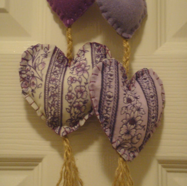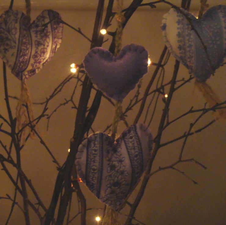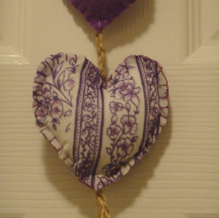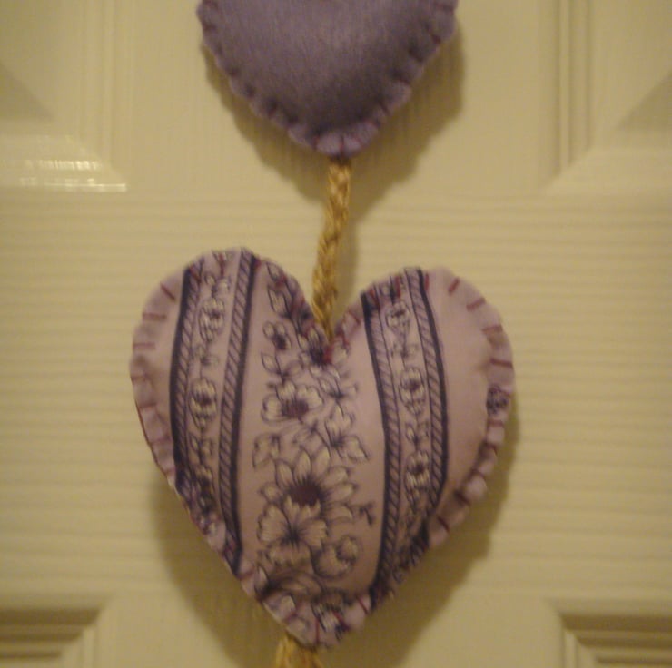 One heart made in Indian cotton, sewn onto a felt backing, and another plain felt heart.
