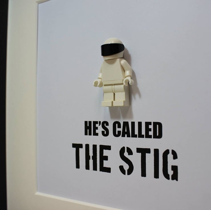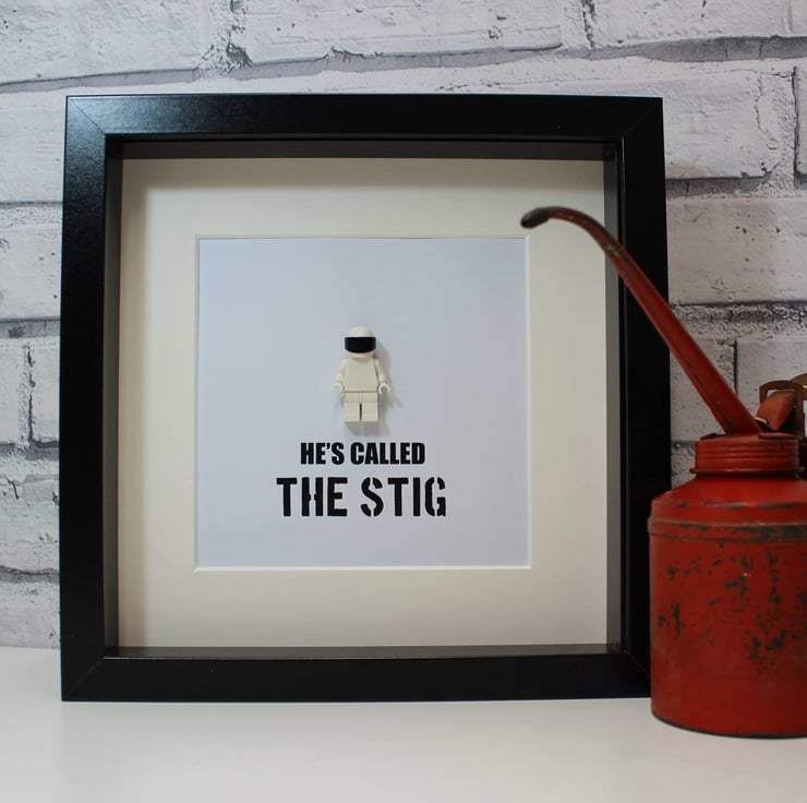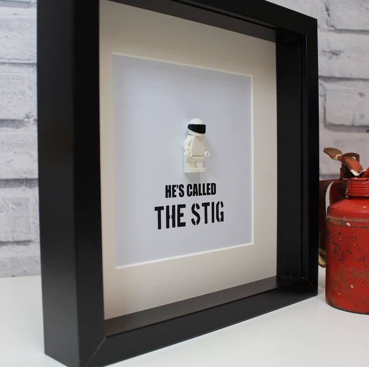 This fabulous deep box frame comes mounted with a customised Lego Stig figure and the immortal words He's called the Stig... underneath.