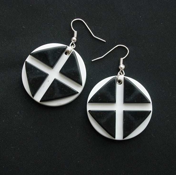 I have made these fun little Retro 60's inspired earrings. They are black/white Retro in the style of 'Mary Quant'. The list price is for one pair of earrings with silver plated ear hooks.